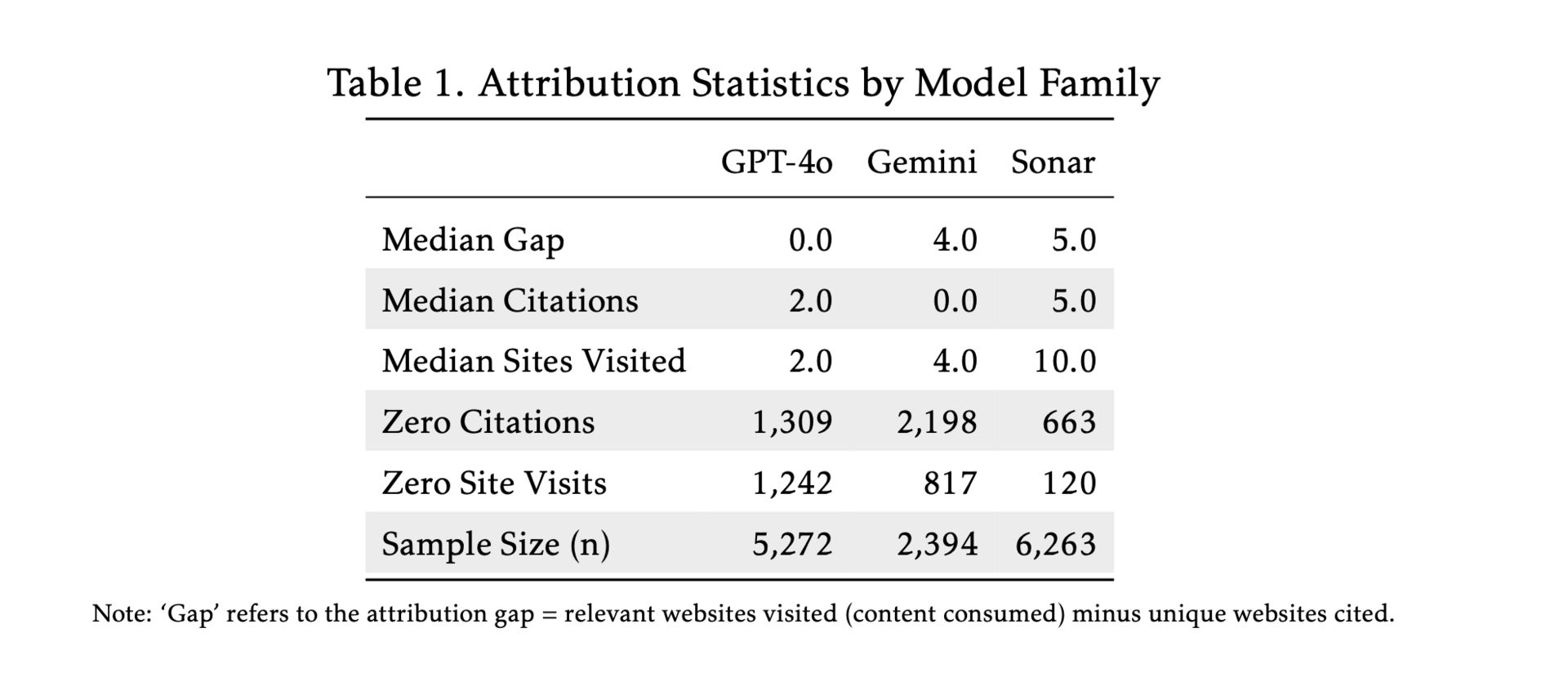 The sharpest attempt to quantify this comes from the Social Science Research Council’s AI Disclosures Project. Their working paper calls the phenomenon “ecosystem exploitation” and proposes a concrete metric: the “attribution gap,” defined as unique relevant pages visited minus unique pages cited.